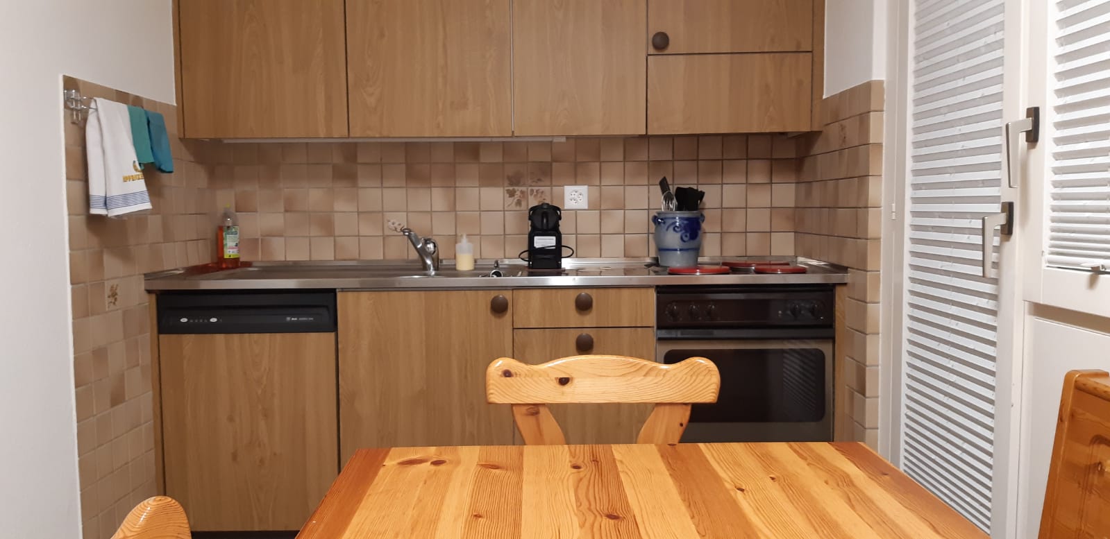 Wohnküche mit Backofen, Kühlschrank mit Tiefgefrierfach, Geschirrspülmaschine, Kaffeemaschine, Bettwäsche Duvet nordisch, Frotteewäsche, Küchentücher, TV, Radio Sommer pro Tag ab CHF 160.00 Winter pro Tag ab CHF 175.00